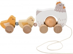 Træhøne med kyllinger til træk – sjov og læring i ét! Dette nuttede tilbehør er den perfekte ledsager for børn, der er ved at lære at gå. Kyllingerne vugger glad, når legetøjet bevæges, og det aftagelige æg drejer for ekstra underholdning. Legetøjet underholder ikke kun, men støtter også udviklingen af barnets koordination og motoriske færdigheder.