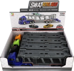 Tag på politiindsats med denne fantastiske autotransportlastbil. Legetøjet har en to-etagers vippeanhænger, som sikrer god leg og masser af plads til dine køretøjer.