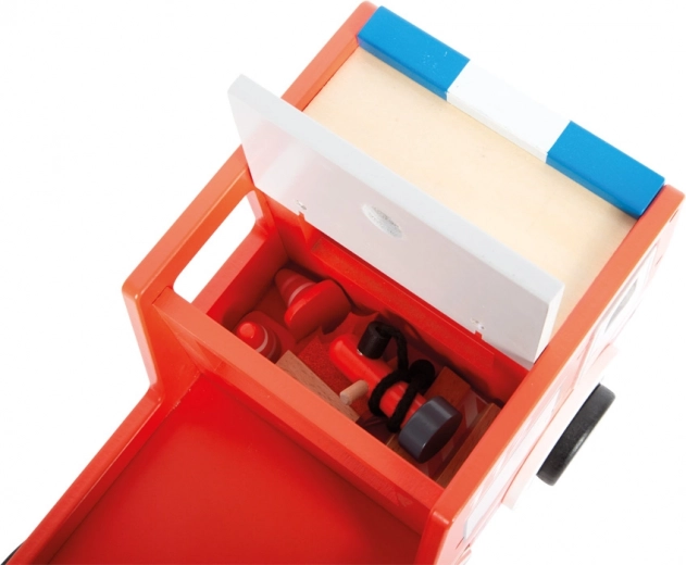 Skabt til børn, der elsker brandbiler og figurer. Det er nok at åbne taget, som giver opbevaringsplads til en bred vifte af tilbehør. Der er også plads til en brandmandsfigur med bevægelige arme og ben inde i førerkabinen.