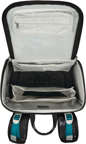 Det justerbare rygsystem med tre størrelser, fuldt justerbare stropper og det aftagelige hoftebælte sikrer komfort og korrekt vægtfordeling fra 1. klasse. Den faste bund holder en stabil form, og tasken kan stå af sig selv.