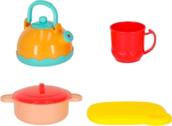 Takket være det store antal elementer kan børn lege butik, køkken og restaurant. Skæring, servering og “madlavning” med kande, gryde og skærebræt udvikler fantasi, kommunikation og støtter etablering af sunde spisevaner.