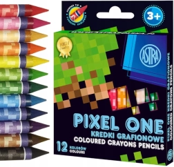 ASTRA kaolinfarvekridt med PIXEL ONE-motiv er ideelle til tegning, farvelægning og skrivning på papir. Deres kerne af kaolinler giver livlige, intense farver og fremragende dækning af store flader, mens den pudrede spids gør det muligt at skabe fine og bløde overgange. Den runde form sikrer et behageligt greb, og papirhylstret med flot tryk i kridtets farve vil glæde enhver fan af PIXEL ONE-motivet.