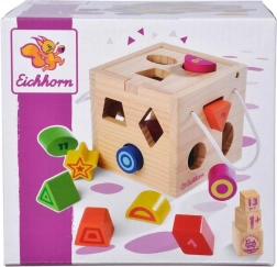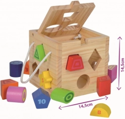 Denne åbnbare trækube tilbyder det klassiske spil med genkendelse af former. Børnene lægger de enkelte brikker i de rigtige huller og træner øje–hånd-koordination, logisk tænkning og koncentration. Takket være de klare farver er læringen naturligt sjov.