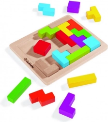 Dette kvalitetsforarbejdede træpuslespil byder på sjov træning af tålmodighed, koncentration og nøjagtighed. Med de farverige bøgeklodser og den overskuelige krydsfinerplade øver spilleren sig i at genkende former, hånd-øje-koordination og rumlig forestillingsevne.