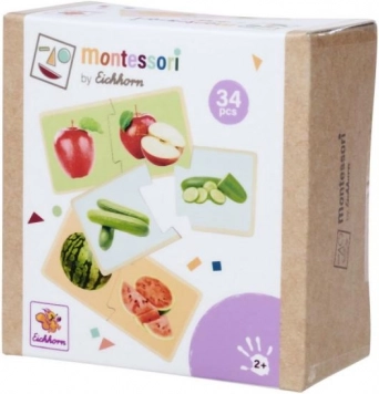 Opdag en sjov måde at lære børn at genkende frugt og grøntsager. Disse træ-Montessori-puslespil består af 36 brikker med realistiske billeder, som udvikler finmotorik, logisk tænkning og ordforråd. Fremstillet af 100% lindetræ med FSC-certificering, velegnet fra 2 år.