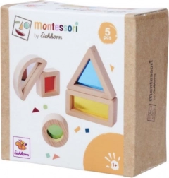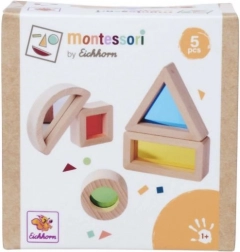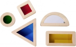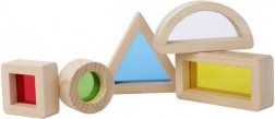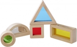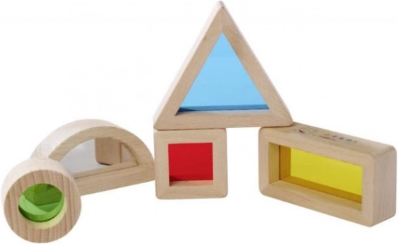 Kuber i forskellige former indbyder til at eksperimentere med lys, farver og former. Børn kan kigge gennem farvede linser, blande farver eller udforske sig selv i spejleffekten. Den omhyggelige forarbejdning i solidt bøgetræ giver en behagelig følelse og lang holdbarhed.