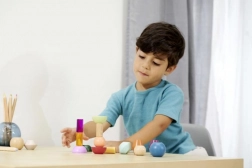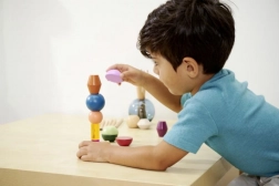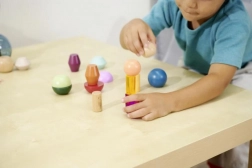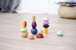Klodserne er lavet af kvalitets FSC-certificeret træ og er beregnet til børn fra 3 år. Sættet understøtter naturligt Montessori-principperne – sortering, stabling og opdagelse af relationer mellem former og farver, samtidig med at det udvikler finmotorik og rumlig forestillingsevne.