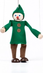 Håndlavet træmarionet af en jæger fra et beskyttet værksted vil glæde både små og store dukkespillere. Takket være styresnorene har den bevægelige arme, er let, holdbar og ideel til populære eventyr, for eksempel Rødhætte.