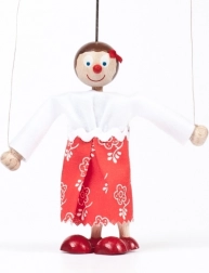 Maruška måler 12 cm (uden styretråd), er let og behagelig at holde, så selv yngre børn kan styre den. Perfekt til hjemmets dukketeater og til at fortælle yndlingseventyr. Hver dukke er unik – farvedetaljer kan variere en smule.