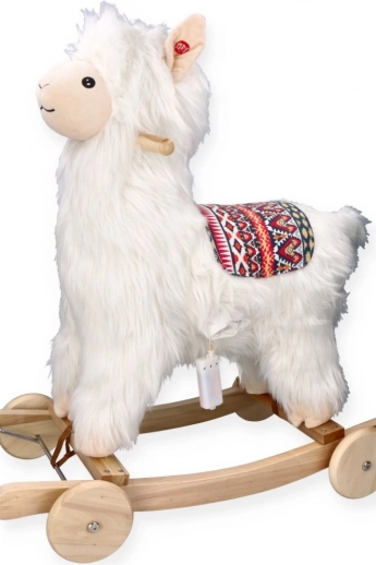 Den søde gyngende alpaka med hjul giver børn timevis af leg og udvikling. Den kombinerer gyngning og kørsel, er velegnet til børn fra 3 år, har en bæreevne på 50 kg og er let at flytte takket være en vægt på 3,5 kg. For forældrenes ro i sindet mangler CE-certificering ikke.