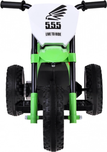 For barnets sikkerhed er motorcyklen udstyret med en elektrisk bremse – når gasspedalen slippes, stopper den automatisk. Bredt placerede baghjul øger stabiliteten og dermed sikkerheden under kørsel. Dæmpningsbånd på hjulene reducerer vibrationer og støj på hårde og ujævne underlag, mens det profilerede sæde støtter korrekt siddestilling og komfort.
