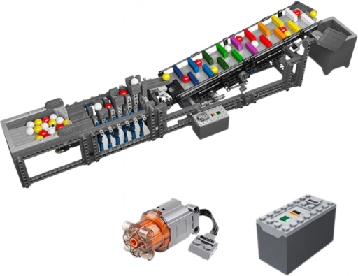 - Byggesæt (1281 dele), elektrisk motor, styremodul, farvede kugler, monteringsvejledning, original emballage