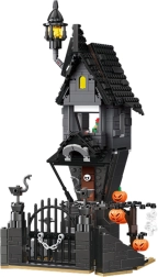 Byg et stemningsfuldt uhyggeligt HALLOWEEN-hus med tårn og 581 dele af holdbart ABS. Modellen er fuld af detaljer – græskar, flagermus, lanterne og port – og er perfekt til kreativ leg og stilfuld dekoration. Middel sværhedsgrad glæder både børn og voksne entusiaster.