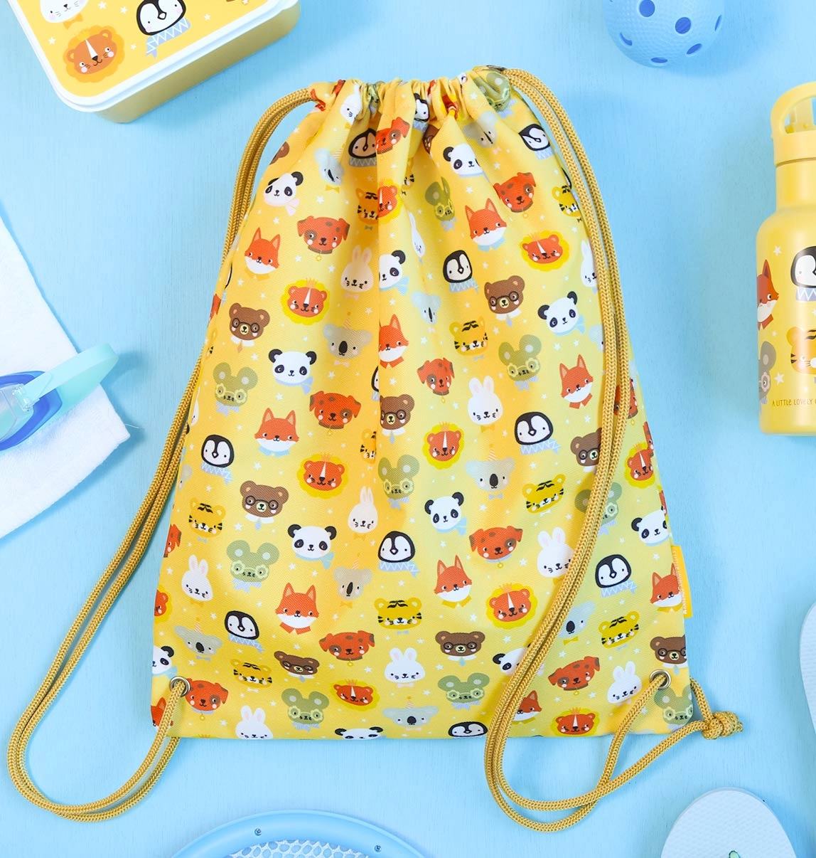 Den praktiske børne-sportspose til ryggen med det glade motiv dyrevenner er et fremragende valg til skole, fritidsaktiviteter, svømning og weekendture. Takket være snørelukningen åbnes den hurtigt og lukkes sikkert, og indeni finder du en lynlåslomme til småting, nøgler eller lommepenge.