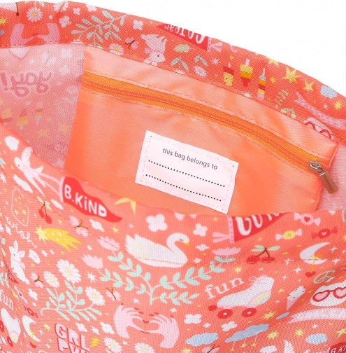 Let og praktisk børne sportspose med snørelukning er ideel til skole, fritidsaktiviteter og udflugter. Den tilbyder nem åbning og lukning og har indvendigt en lynlåslomme til sikker opbevaring af småting. Fremstillet af holdbart 100 % polyester, posens mål er 32 × 42 cm og den indvendige lomme 18 × 13 cm.