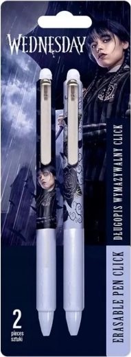 Oplev skriveglæde uden stress over fejl! Dette sæt med to slettbare penne med det stilfulde Wednesday-motiv tilbyder sletbart blæk til nemme rettelser, ergonomisk greb for komfort og er ideelt til daglig skrivning, skole, kontor og kreative projekter derhjemme.