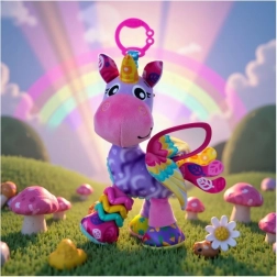 Leder du efter et sanselegetøj, der fanger din baby ved første berøring og blik? Enhjørningen Stella kombinerer bløde plysmaterialer, knitrende vinger, klingende ringe og et sikkert spejl på vingen. Den skinnende horn, sølvfarvede vinge og lagdelte hale fremmer nysgerrig udforskning og finmotorik.
