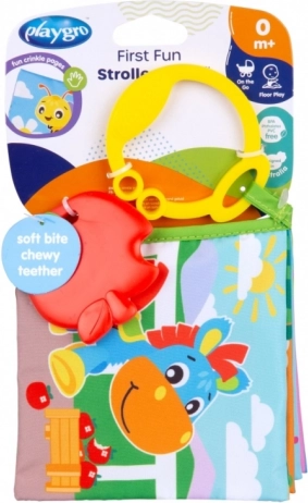 Gør hver gåtur sjovere med et smart legetøj, der støtter barnets sanseudvikling. Farverige dyreillustrationer, knitrende sider og kontrastelementer stimulerer syn, berøring og hørelse, mens den bløde bidering blidt masserer gummerne. Den praktiske gule clip sørger for, at bogen bliver, hvor den skal, og altid er inden for rækkevidde.
