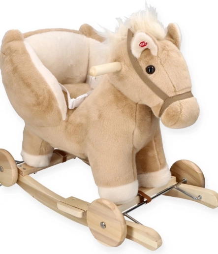 Gyngende hest Pegas beige med sæde og hjul