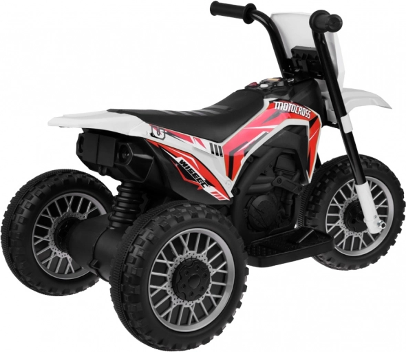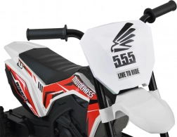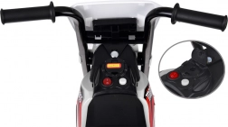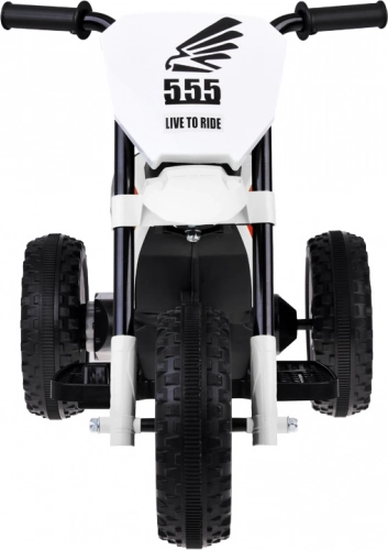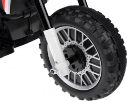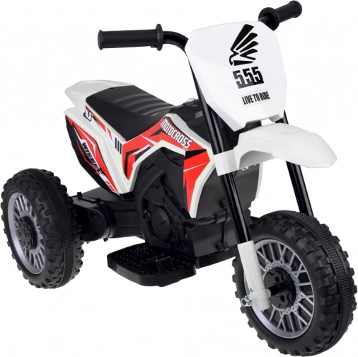 Den lille motorcykelfan får et realistisk look inspireret af motocross, en robust konstruktion og nem på- og afstigning. De kompakte mål passer til lejligheden, fortovet og stier i parken. Enkel styring på styret og melodier på engelsk understøtter køreglæden.