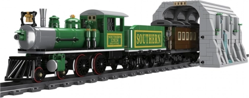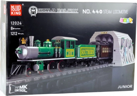 Modellen udmærker sig ved et autentisk udseende: grøn-sort udførsel, bevægelige hjul og realistiske detaljer. Lokomotivet er udstyret med elektrisk drift og et 3,7 V Li-batteri (inkluderet), fjernbetjeningen kræver 2× AAA (medfølger ikke). Med 1212 dele udvikler sættet finmotorik, logik og rumlig fantasi og underholder i timevis.