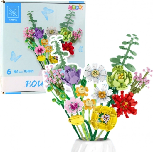 Oplev glæden ved at skabe med en dekorativ buket, som du nemt samler af 854 dele. Den farverige komposition omfatter op til 12 forskellige blomster – fra små knopper til fyldige blomster – og pynter i enhver indretning. Takket være kompatibiliteten med andre byggesæt kan du udvide og tilpasse buketten efter ønske.