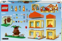 Dette farverige familiehus bringer de populære figurer Bluey, Bingo, mor Chili og far Bandit sammen med masser af udstyr til hverdagens og de skøre eventyr. Hvert rum kan tages af og omarrangeres, så børn nemt kan skabe deres egne scener fra serien og nye historier.