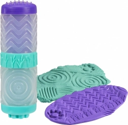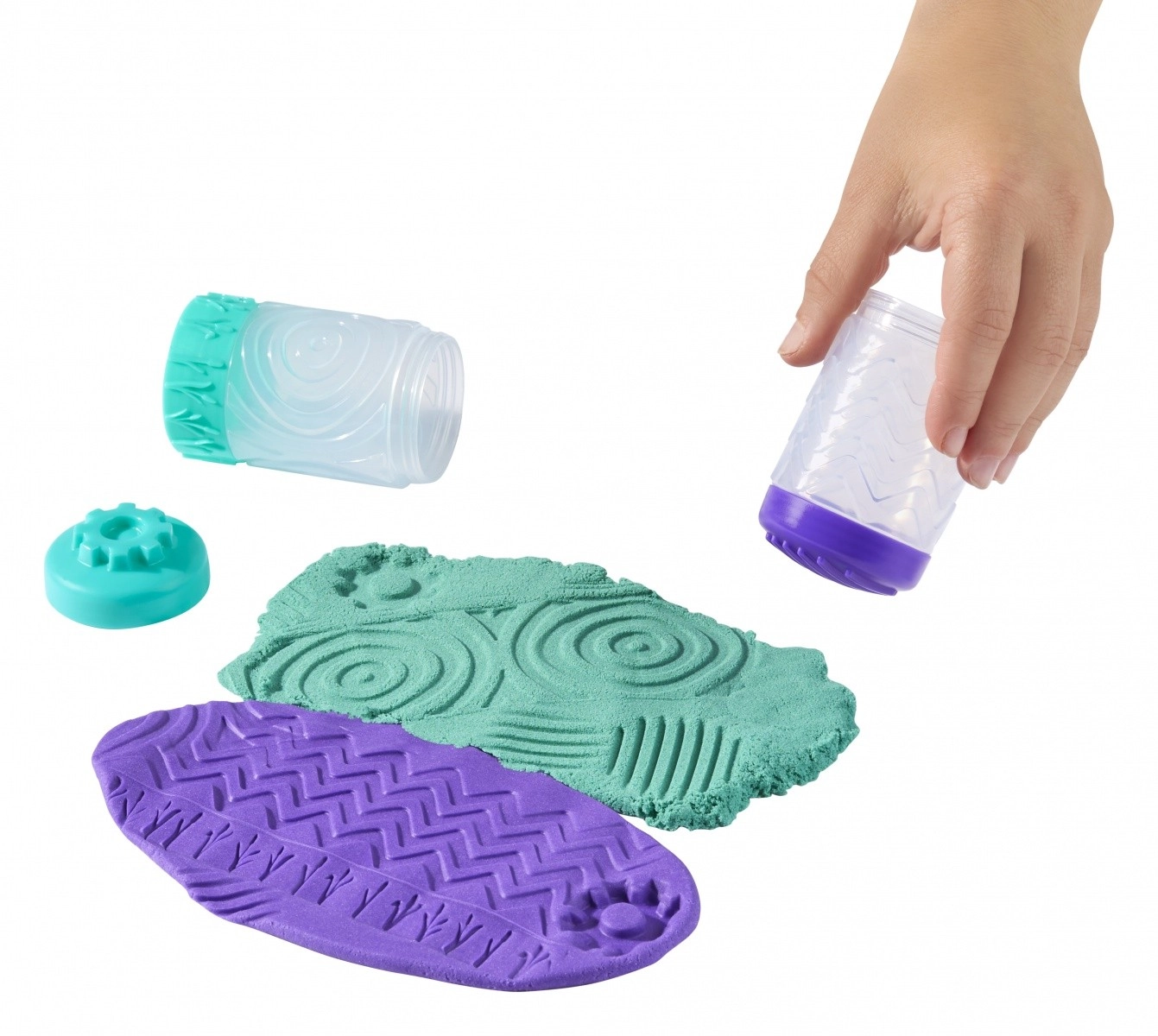 Med dette sæt får du alt, hvad børn behøver for at skabe: gennemsigtige beholdere med ikke-udtørrende masse og kinetisk sand, udskiftelige stempler i lågene og et smart forbindelsesstykke med teksturer til nem udrulning af mønstre. Materialerne er behagelige at røre ved, genanvendelige og perfekte til at udvikle finmotorik og fantasi.