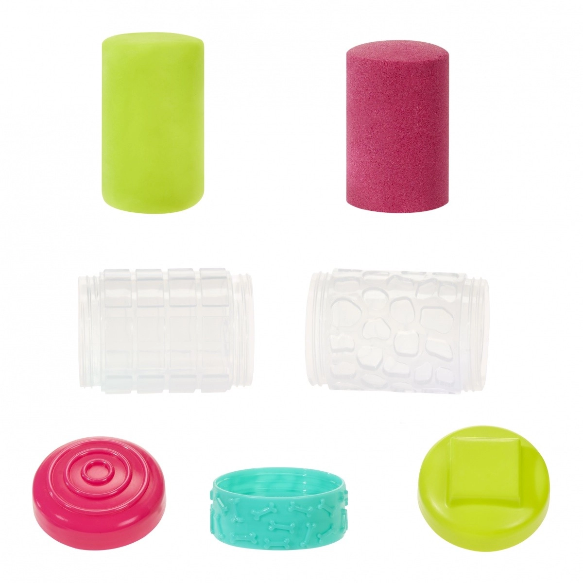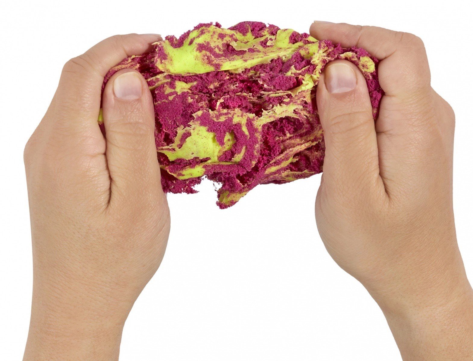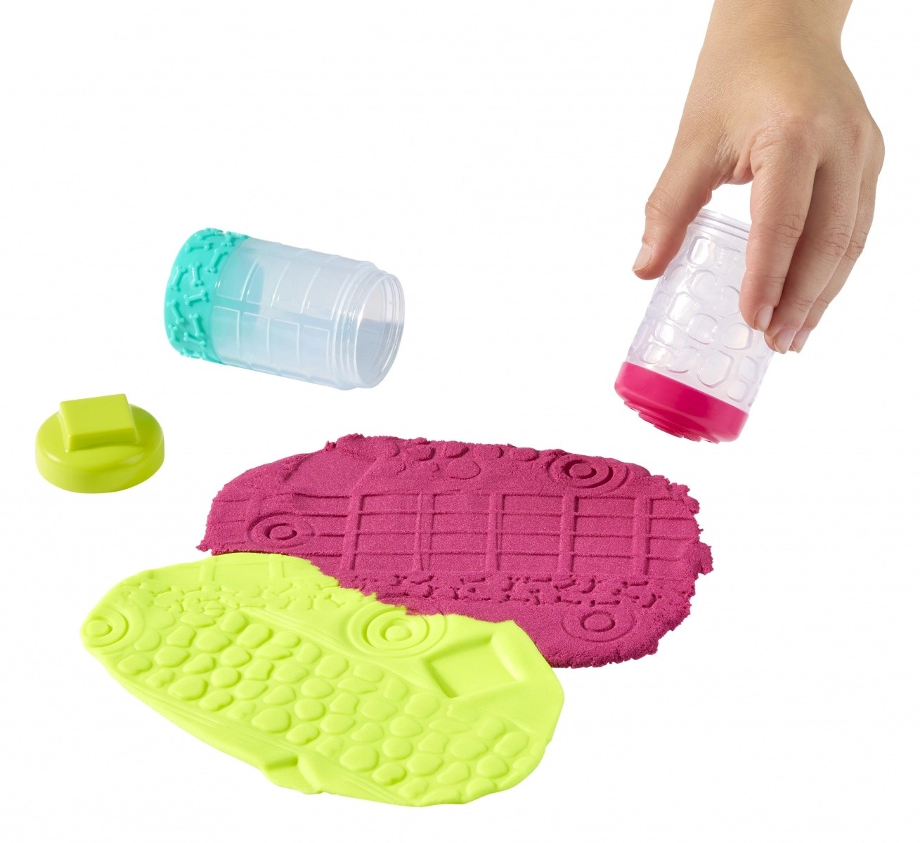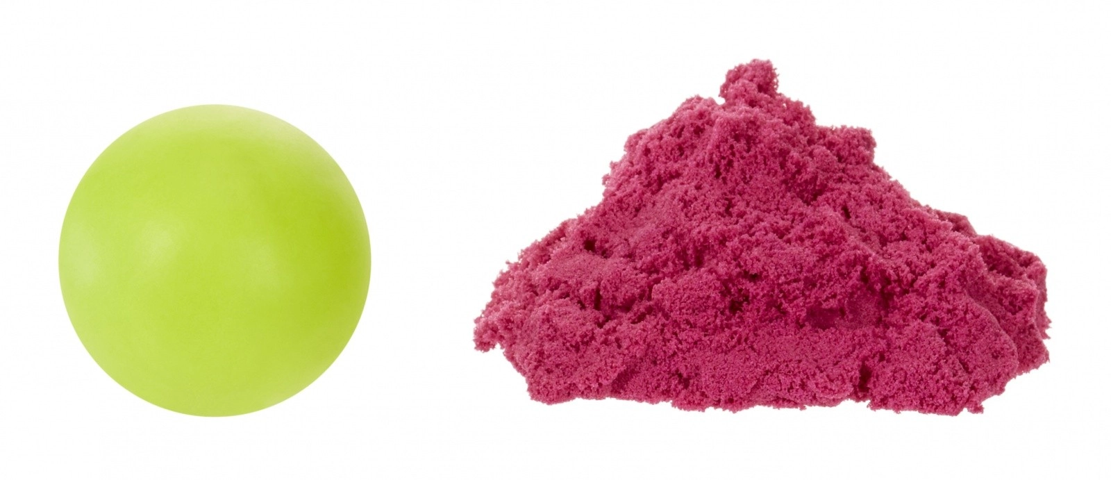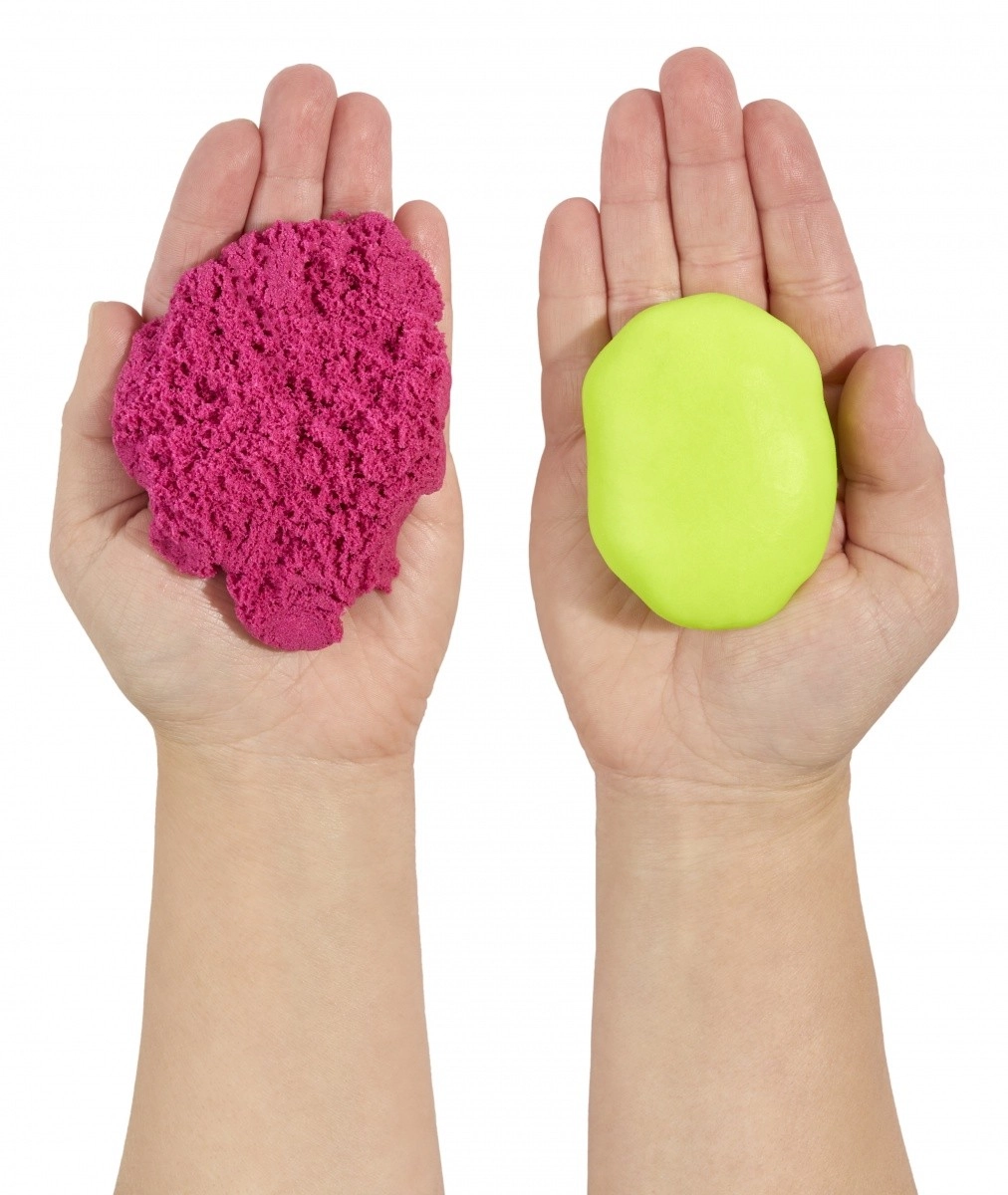 Dette smarte, kreative sæt giver to forskellige teksturer for maksimal sjov – en fin, glat masse og struktureret, formbart sand. Takket være den særlige sammensætning udtørrer massen ikke, så børn kan lege igen og igen. Limegrøn og lyserød indbyder til at blande former, mønstre og fantasifuld modellering.