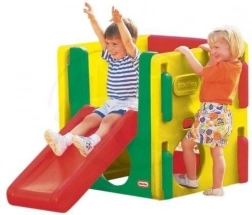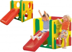 Little Tikes Jr. Activity Gym – Natural er et farverigt og stabilt klatrestativ med rutsjebane, designet til at støtte grovmotorik, balance og fantasi. Takket være de kompakte mål passer det både inde og ude og giver børn et sikkert område til at klatre, kravle og rutsje.