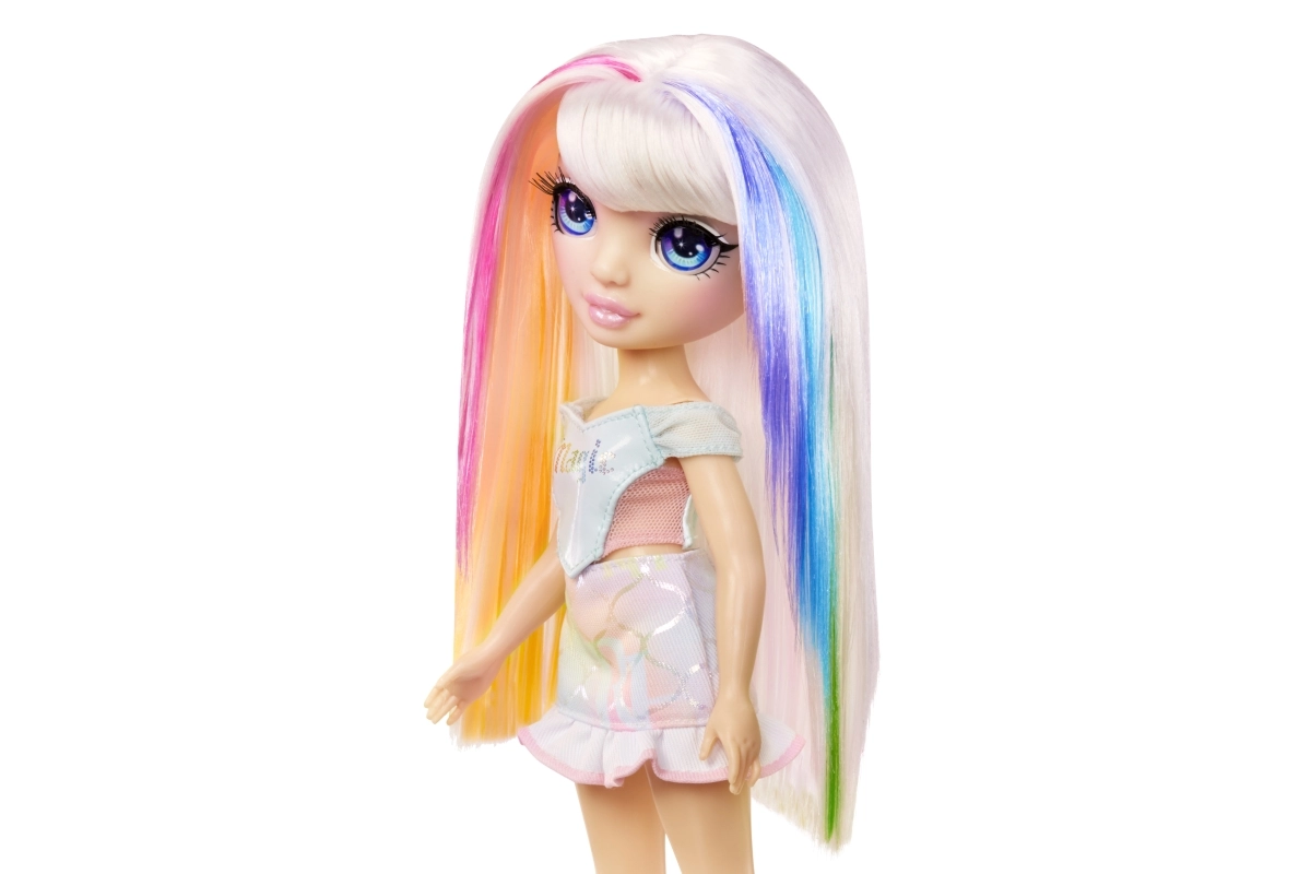 - Lange regnbuefarvede lokker – ideelle til børstning og kreative frisurer.