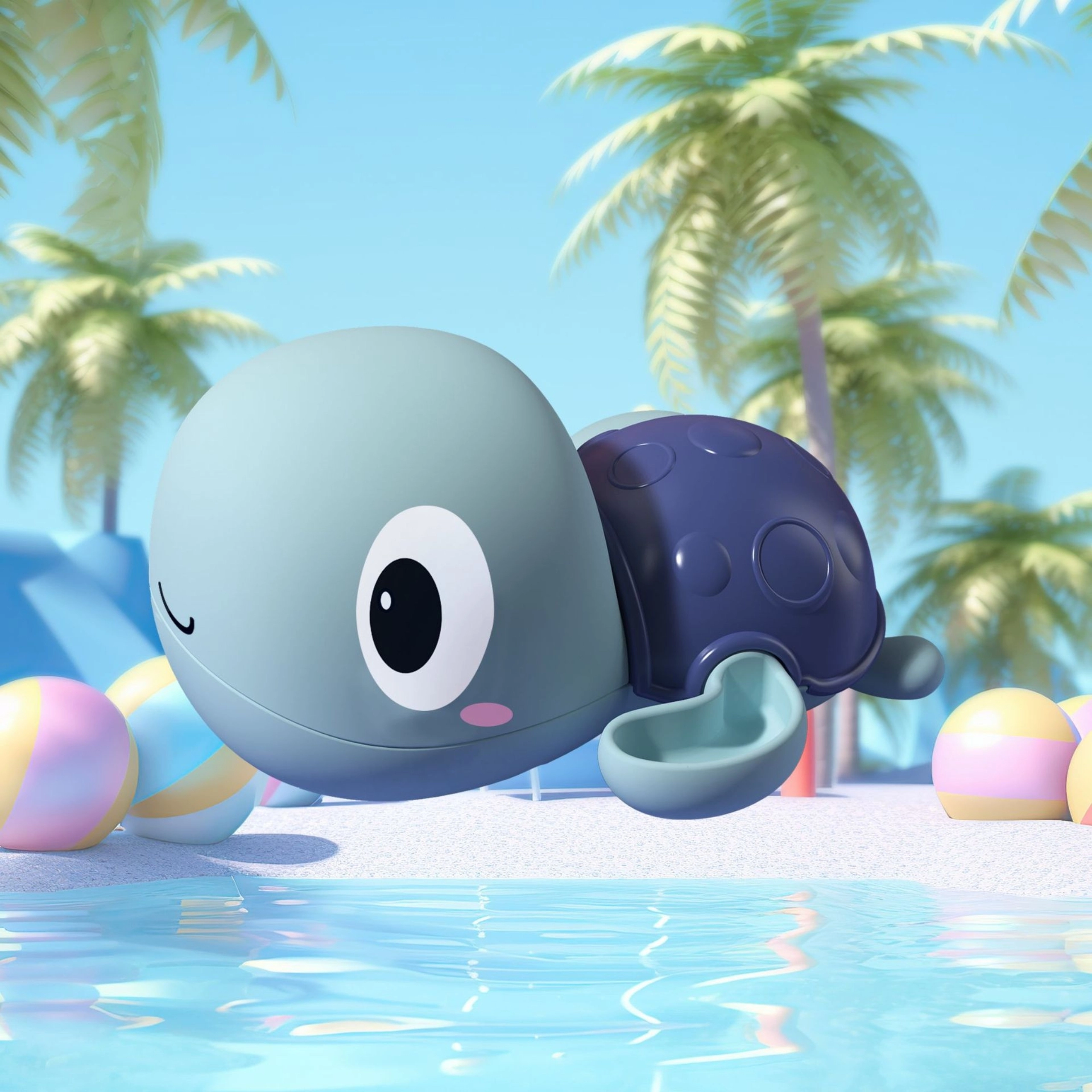 - Sjov i vandet: realistiske finnebevægelser og blide sprøjt.