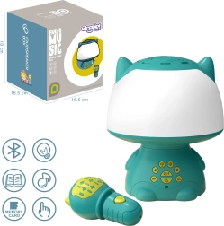 Til musikafspilning kan du bruge Bluetooth 5.0, AUX-kabel eller microSD-kort. I pakken medfølger en trådløs mikrofon til karaoke – børn kan synge deres yndlingshits, og med stemmeforvrængeren (barn, dreng, pige, gammel mand) bliver det endnu sjovere. Opladning sker via USB‑C, og batteriet holder op til 6 timers afspilning.