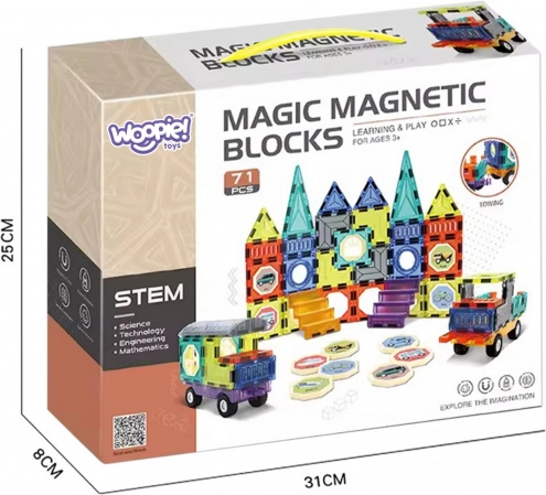 Woopie magnetiske byggesæt 3D – slot og køretøjer, 71 dele