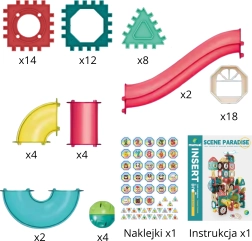 Dette lærende byggesæt kombinerer leg med læring. Takket være modulære dele kan man nemt samle stabile konstruktioner og eksperimentere med fysiske principper som tyngdekraft og hastighed. De gennemsigtige dele af banen gør det muligt at følge kuglernes bevægelse og motiverer børn til videre udforskning.