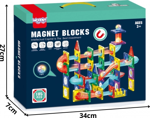 Det magnetiske byggesæt fra WOOPIE giver børn fra 3 år timevis af meningsfuld underholdning. Takket være stærke magneter forbindes delene hurtigt og sikkert, så I nemt kan bygge både simple og avancerede kuglebaner. Legen udvikler logisk og rumlig tænkning, hånd-øje-koordination samt kreativitet.