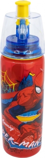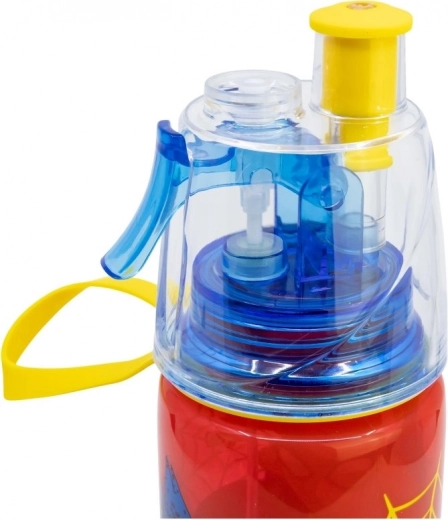 Praktisk vandflaske til børn med SPIDERMAN-motiv kombinerer en sugerørstud for behagelig drikning og en knap til forfriskende forstøvning. Ideel til skole, udflugter og sport, med en kapacitet på 575 ml og BPA-frit materiale.