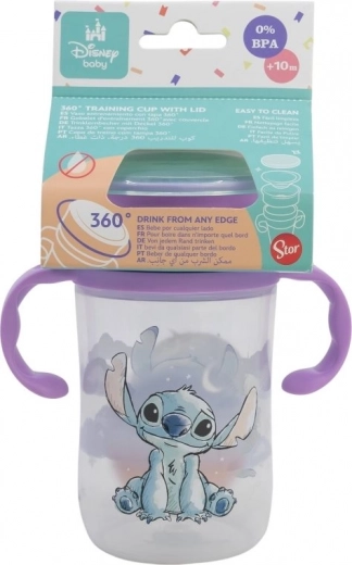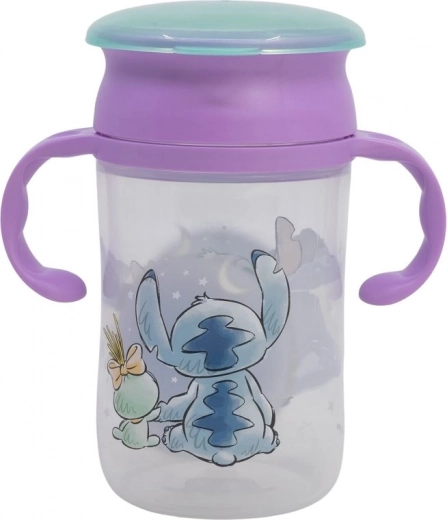 STITCH træningskop til børn 395 ml med 360° drikkekant, greb mod spild, BPA-fri og nem rengøring. Perfekt til at lære at drikke af en almindelig kop.