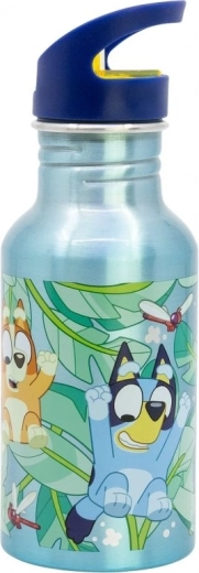 Let og robust aluminiumsdrikkeflaske med Bluey-motiv på 545 ml, ideel til skole, udflugter og sport. Med skruelåg og anti-spild sugerør forhindrer den pålideligt lækager. Det praktiske håndtag gør den nem at bære, og materialet er uden BPA for sikker daglig brug.