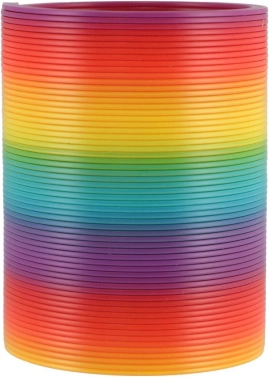 Denne farverige regnbuefjeder giver endeløs underholdning derhjemme og i skolen. Takket være de elastiske skålformede vindinger flyder den glidende, hopper og bevæger sig elegant ned ad trapper. Den lette plastudførelse er sikker for børn og modstandsdygtig over for daglig brug.