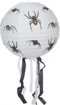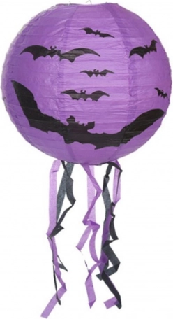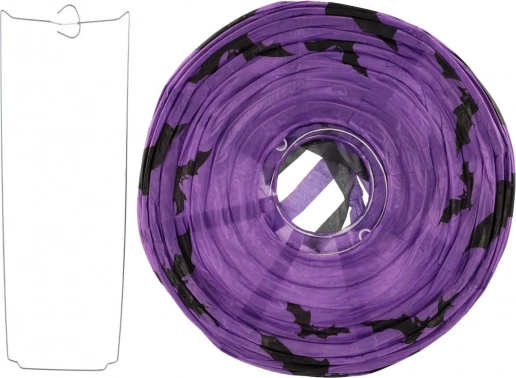 Skab en uhyggeligt magisk stemning med en rund Halloween-lampion på 30 cm i diameter. Lampionen er lavet af let papir og virker meget effektfuld ved ophængning takket være de nederste frynser. Vælg mellem tre markante motiver: græskar (orange), flagermus (lilla) og edderkopper (hvid).