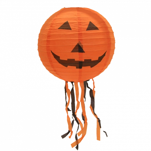 En stilfuld Halloween-lampion i kugleform med en diameter på 30 cm, der lyser op i enhver efterårsdekoration. Vælg mellem 3 motiver – orange græskar, lilla flagermus eller hvide edderkopper. Det lette papir, nem ophængning og dekorative frynser skaber en iøjnefaldende effekt. Ideel til Halloween-fester, hjemmedekoration og overdækkede udendørsområder i tørt vejr. Sælges uden pind.