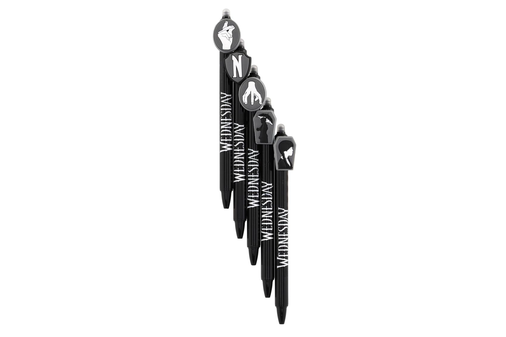 Oplev en sjov og praktisk viskelbar gelpen med motiv af Wednesday. Ingen overstregninger – fejl slettes nemt med den specielle viske-spids. Ideel til skolen, til stressfri skrivning og for alle licensfans.