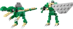 Dette alsidige byggesæt forener forhistoriske væsner med moderne maskiner. Fra ét sæt kan du bygge 2 forskellige modeller – en karismatisk dinosaur og en actionfyldt robot. Takket være de bevægelige dele kan modellerne stilles i effektfulde positurer og bruges til at skabe egne spillesituationer.