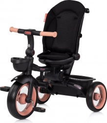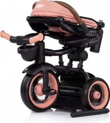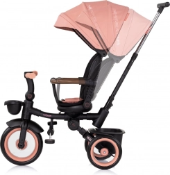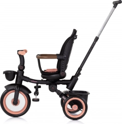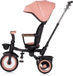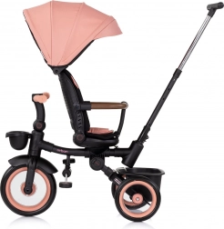 For nem opbevaring har trehjuleren et nedfældeligt ryglæn og en sammenklappelig bagdel. Pedalerne kan flyttes til fodstøtten, når barnet endnu ikke træder i pedalerne. Styret med lys (2× AAA, ikke inkluderet) øger både sjov og synlighed under kørslen.