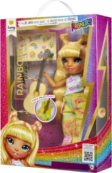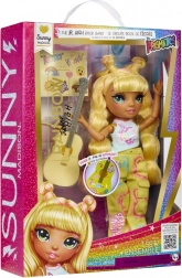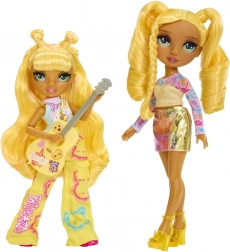 Sunny fra Rainbow High Junior Fashion-kollektionen stråler som leadguitarist – med langt gult hår, detaljeret makeup og fleksible led til realistiske poser. Sættet indeholder et outfit med markante prints, stilfulde sneakers, en kam og en gul guitar med sjove klistermærker, så børn kan tilpasse looket.