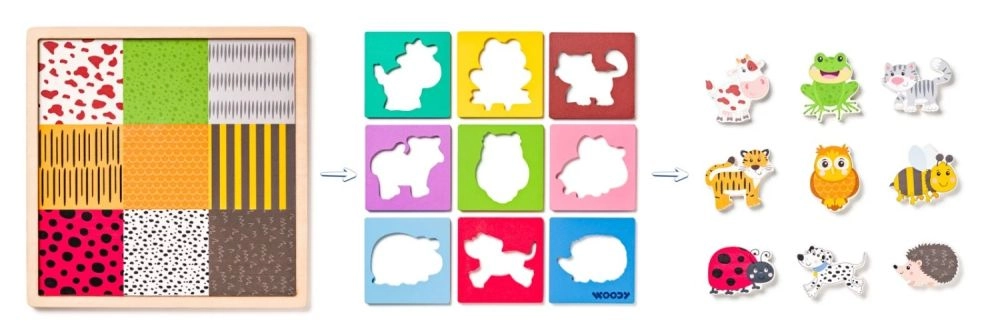 Træpuslespillet “Dyremønstre” er et fremragende valg til førskolebørn. De solide brikker er lette at gribe, og børn lærer at genkende former og dyr, mens de lægger puslespillet, og de træner øje–hånd-koordination og tålmodighed. Den kompakte størrelse passer både til rejser og børneværelset.
