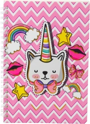 Den søde notesbog med motiv af en kat–enhjørning vil begejstre alle, der elsker farverigt skolesæt. Den pinke, bløde omslag med glade illustrationer og A5-format passer perfekt i rygsækken. 60 linjerede ark giver masser af plads til noter, opgaver og dagbogsindlæg, mens den spiralindbundne ryg gør det nemt at bladre og skrive komfortabelt.
