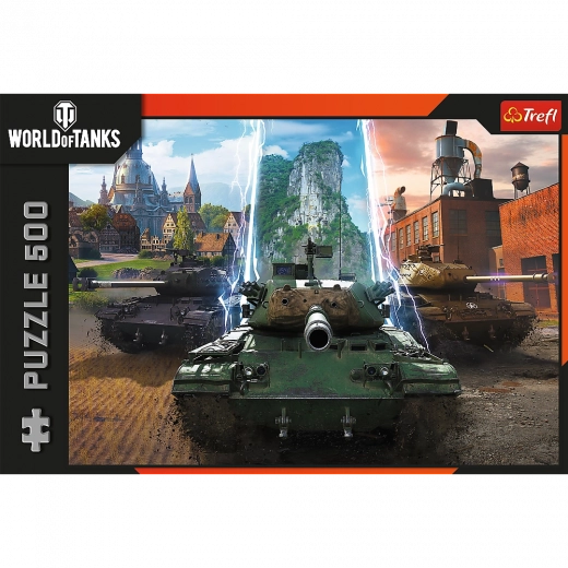 Nyd at lægge et kvalitets puslespil med 500 brikker med motiv fra spillet WORLD OF TANKS – Tid til action!. Når det er lagt, får du et billede på 48 × 34 cm. Puslespil fra Trefl imponerer med mættede farver, kalandreret papir med let glans og sikre, miljøvenlige farver.
