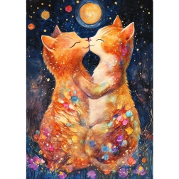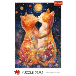 Romantisk puslespil med motiv af to killinger i et kys i måneskin indeholder 500 brikker og et færdigt billede på 48 × 34 cm. Fremstillet i Polen af materialer af høj kvalitet med fokus på miljøet og med specielt kalandreret papir for færre refleksioner og mere behagelig samling.